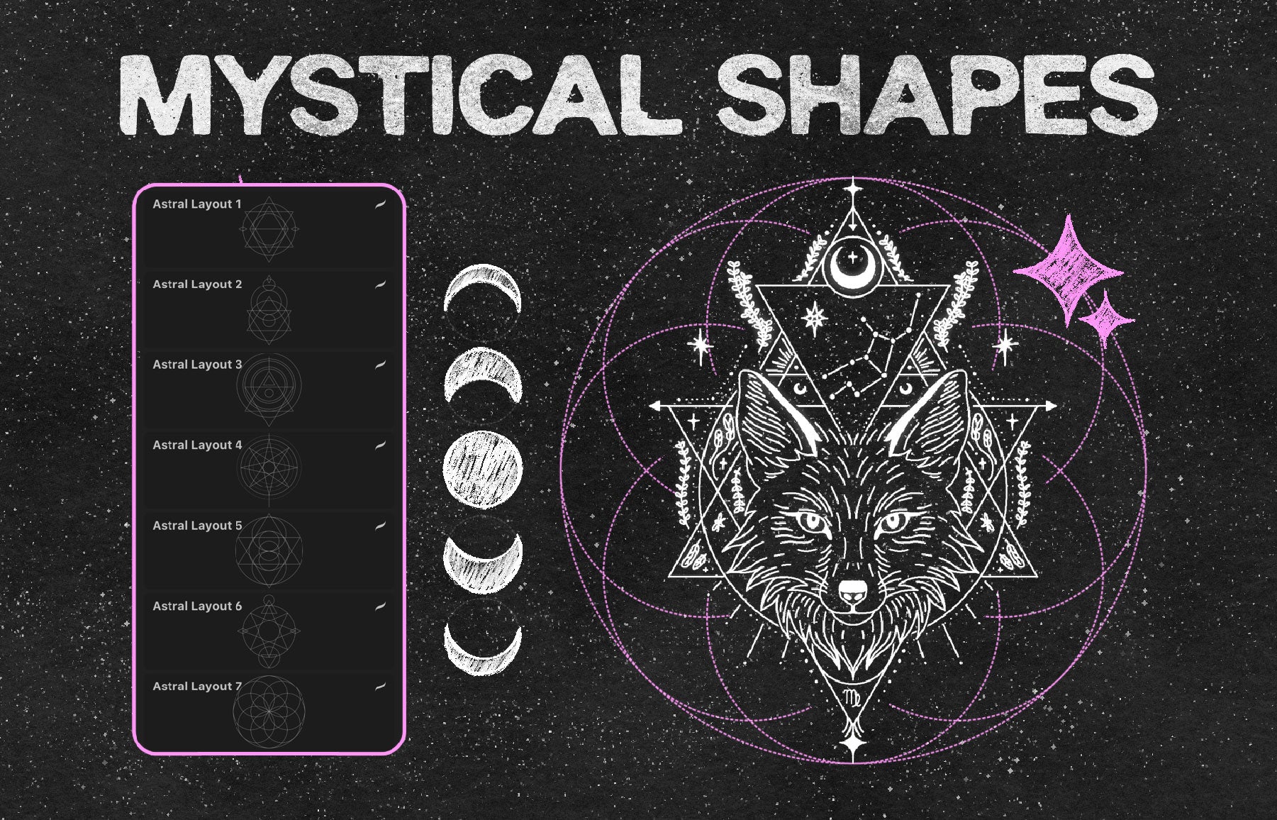 10 Astral Shape Stamps: moons, stars, and celestial forms ready to drop into your compositions.